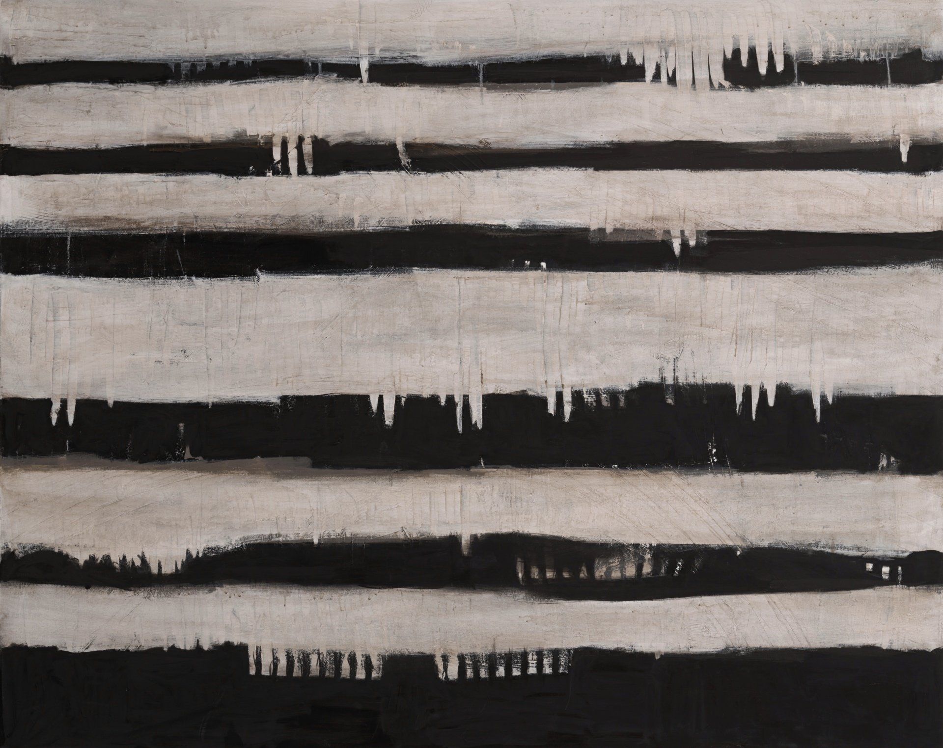 Loren’s new series is influenced by her love of architecture and nature. They resemble a site plan or a layout with a blank canvas to fill. She has taken her bold black brush strokes and softened them into pale off white set into a linen colored background.